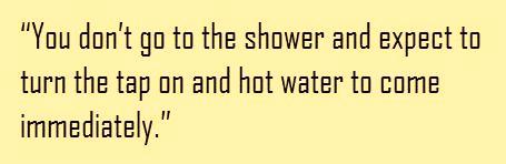 “You don’t go to the shower and expect to turn the tap on and hot water to come immediately. It’s almost as if some people keep going to the taps and turning it on but it’s not hot so they turn it off again, and they go to it and turn it on and it’s still not hot and they expect it to be hot without them running it and working at it and getting through that bad work and that bad writing and those mistakes.